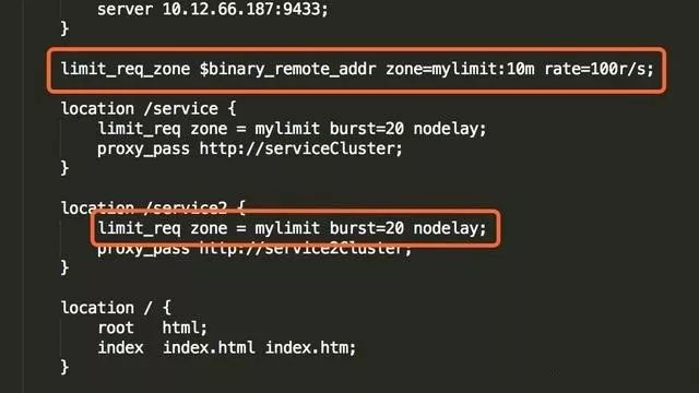 2)Zone定义IP状态及URL访问频率的共享内存区域。zone=keyword标识区域的名字,以及冒号后面跟区域大小。16000个IP地址的状态信息约1MB,所以示例中区域可以存储160000个IP地址。