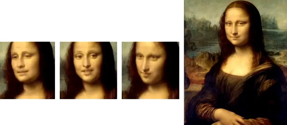 即使蒙娜丽莎只有一张名画传世,三星透过搭配图像资料集中与蒙娜丽莎脸部特征相似的人物,让世人也能看到蒙娜丽莎的其他表情和动态影像