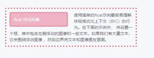 使用简单的float示例最容易理解块级格式化上下文(BFC)的行为。在下面的示例中,