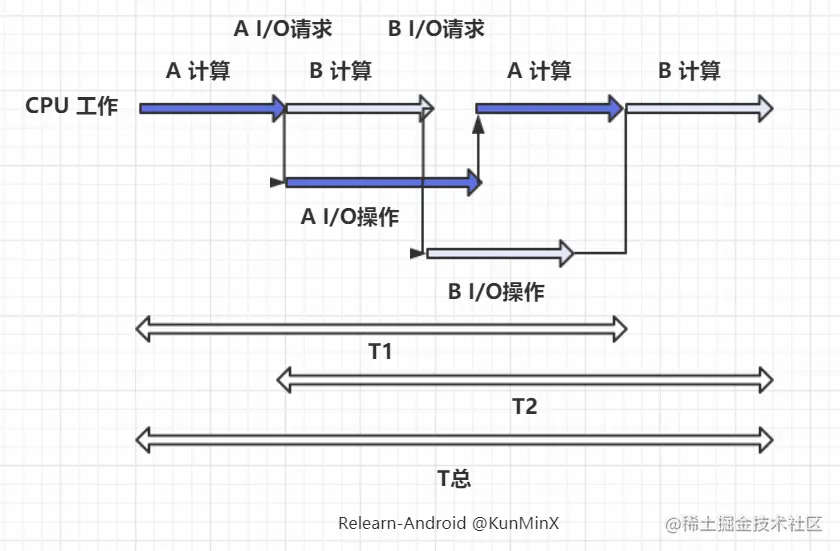 但此时仍没有解决的是:当一个程序执行到一半,发出 IO 请求时,CPU 便不得不等待 IO 操作完成。