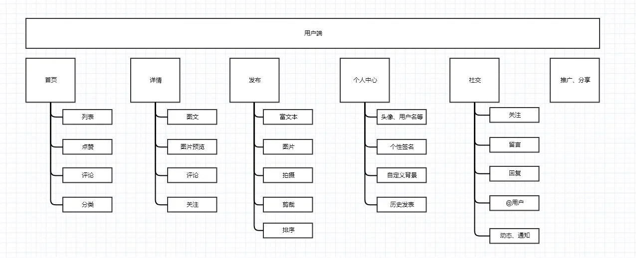 经过考虑决定做一个小号的微博小程序, 梳理的功能如下