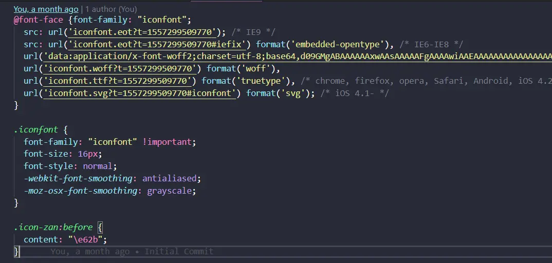 小程序推荐使用rpx作为尺寸单位, 切图适配的时候, 小图标可能会在缩放的时候失真,推荐使用字体图标。将制作好的字体图标放入小程序的css文件中就好了,我这里是用的阿里icon的图标库, 将base64的css样式直接放在全局的css中