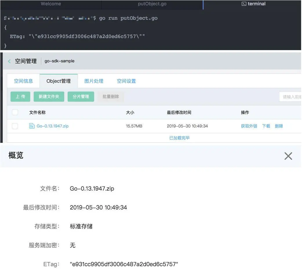 至此,我们已经把主要的OSS操作示例介绍完毕,其余的操作我们根据实际需要继续整理,譬如不使用s3manager,直接用MultipartUpload等基础接口来实现分块上传,大家可以尝试一下,我们下回分解。