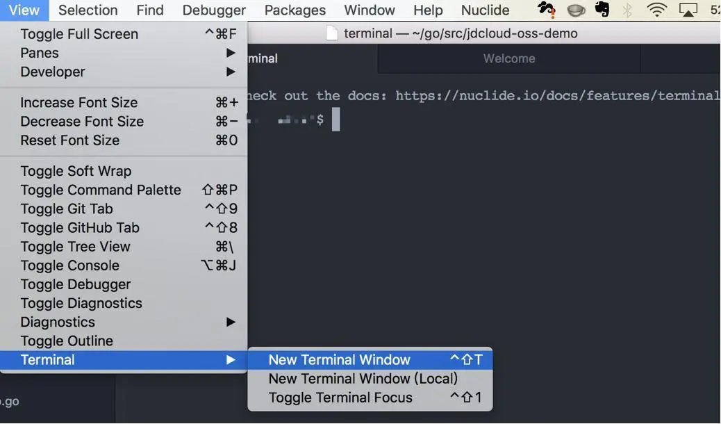 安装完我们就可以进行编码,为了方便编译、测试和编译,需要配合terminal使用,可以通过view-Terminal打开终端,不需要另外切换界面。