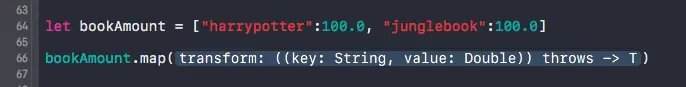 let bookAmount = [“harrypotter”:100.0, “junglebook”:100.0]