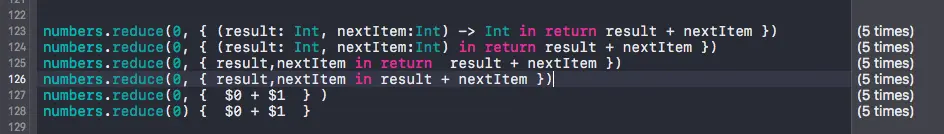下面的代码作用都是一样的,它们表示了一个从繁到简的过程。通过下面的代码,你应该对闭包有了一个清晰的认识。