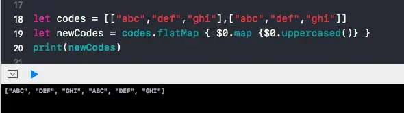我们可以用 flatMap 来实现将一个二维数组铺平为一维数组。 flatMap 的闭包接受一个集合类型的参数,在闭包中我们还可以进行 filter map reduce 等操作。