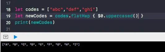 Apple docs 解释: 返回一个对序列的每个元素进行形变的串级结果( Returns an array containing the concatenated results of calling the given transformation with each element of this sequence.)