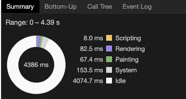 可以看到rendering和painting占用了不少时间进到event log看下