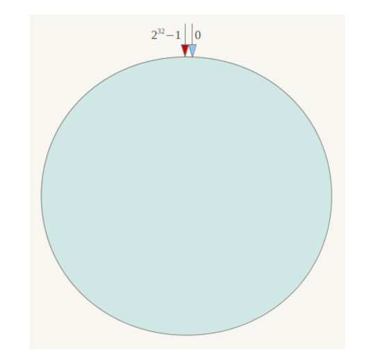一致性Hash算法将哈希值映射的空间表示成一个虚拟圆环,一般可以设置映射值的范围是0----232-1,也就是说,我们得到的hash值要对232取模。该hash环可表示如下: