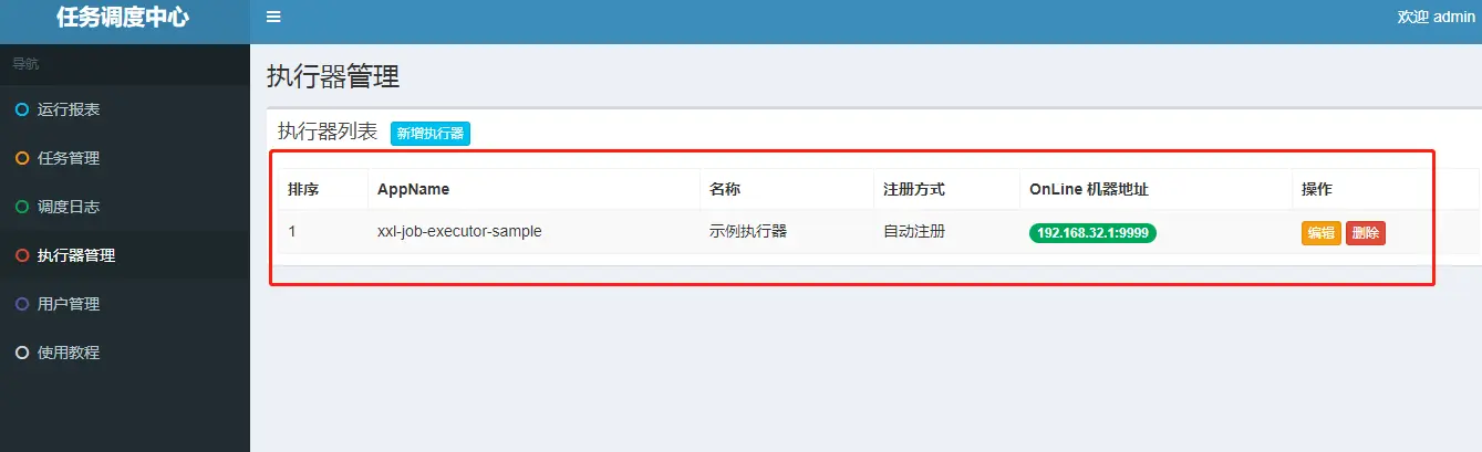 然后启动执行器,启动完成后,我们会发现管理页面的执行器列表会多出我们刚才启动的执行器