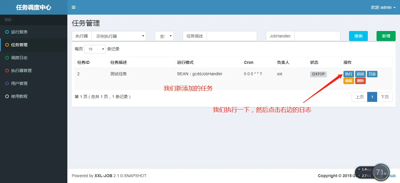 以上,我们的任务调度管理端已经搭建完成,接下来,让我们测试下任务调度。