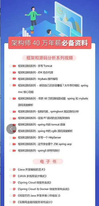 搞懂这些框架源码,带你吊打面试官 冯峰 2019-06-05 145 阅读1分钟 2019年马上就要过完二分之一了, 这里为大家准备了一份福利。 为了帮助大家从一个码农进阶为优秀的程序员,我精心准备了框架源码系列资料,希望能帮你系统的提升实战能力。 这些资料包括: 讲解视频 电子书 『视频截图(部分)』 ☟ spring和mybatis源码深度解析 JDK动态代理 ▲ 征服P7面试的主流框架源码 资料详情如下 需要资料的小伙伴,关注+转发私信回复我资料就可以自行领取啦