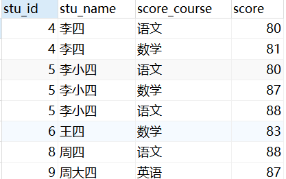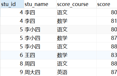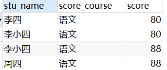 select s.stu_id ,s.stu_name,c.score_course,c.score from tb_score c inner join tb_student s on s.stu_id = c.score_stu_id;