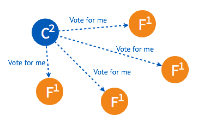 这是最简单的选主情况,只要有超过一半的节点投支持票了,Candidate 才会被选举为 Leader,5个节点的情况下,3个节点 (包括 Candidate 本身) 投了支持就行。