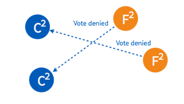 两个 Follower 已经投完票了,拒绝了这个 Candidate 的投票请求。