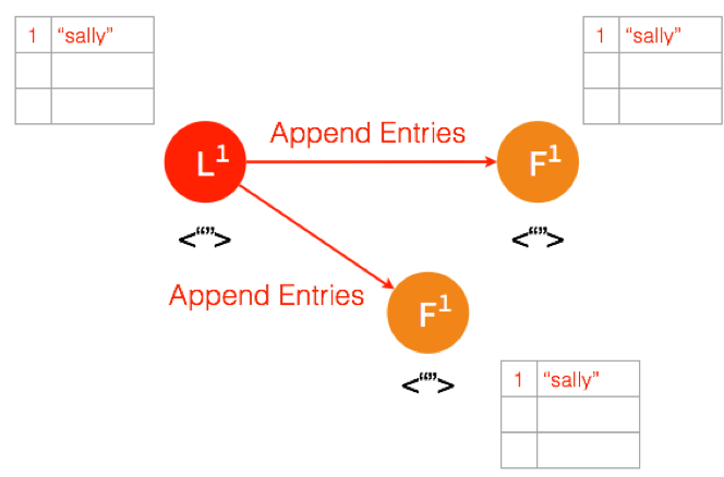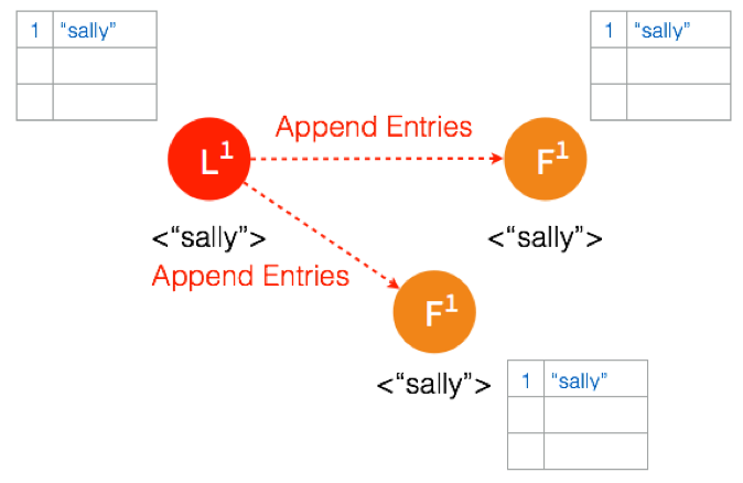 三个节点的 Leader 广播 AppendEntries