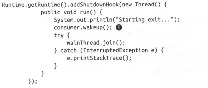 在之前讨论轮询时就说过,不需要担心消费者会在一个无限循环里轮询消息,我们会告诉消费者如何优雅地退出循环。