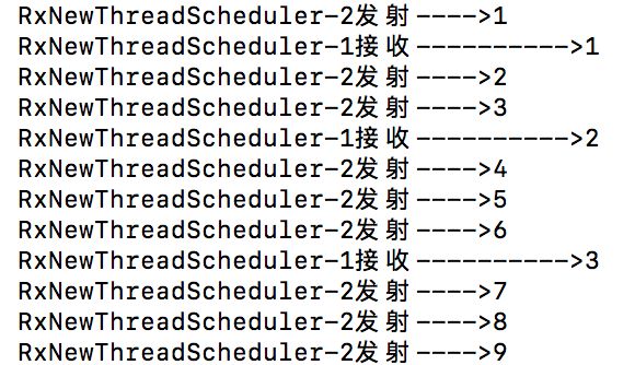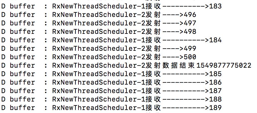 1public void flowableEmitTest(final int emitCount, final int requestCount) { 2 Flowable 3 .create(new FlowableOnSubscribe<Integer>() { 4 @Override 5 public void subscribe(FlowableEmitter<Integer> e) throws Exception { 6 String threadName = Thread.currentThread().getName(); 7 for (int i = 1; i <= emitCount; i++) { 8 Log.d(TAG, "当前未完成的请求数量-->" + e.requested()); 9 Log.d(TAG, threadName + "发射---->" + i);10 e.onNext(i);11 }12 Log.d(TAG, threadName + "发射数据结束" + System.currentTimeMillis());13 e.onComplete();14 }15 }, BackpressureStrategy.BUFFER)16 .subscribeOn(Schedulers.newThread())//添加两行代码,为上下游分配独立的线程17 .observeOn(Schedulers.newThread())18 .subscribe(new Subscriber<Integer>() {19 @Override20 public void onSubscribe(Subscription s) {21 s.request(requestCount);22 }2324 @Override25 public void onNext(Integer integer) {26 Log.d(TAG, Thread.currentThread().getName() + "接收---------->" + integer);27 }2829 @Override30 public void onError(Throwable t) {31 t.printStackTrace();32 }3334 @Override35 public void onComplete() {36 Log.d(TAG, Thread.currentThread().getName() + "接收----> 完成");37 }38 });39}