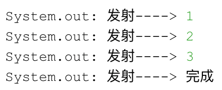 1public void flowableTest1() { 2 Flowable 3 .create(new FlowableOnSubscribe<Integer>() { 4 @Override 5 public void subscribe(FlowableEmitter<Integer> e) throws Exception { 6 System.out.println("发射----> 1"); 7 e.onNext(1); 8 System.out.println("发射----> 2"); 9 e.onNext(2);10 System.out.println("发射----> 3");11 e.onNext(3);12 System.out.println("发射----> 完成");13 e.onComplete();14 }15 }, BackpressureStrategy.BUFFER)16 .subscribeOn(Schedulers.newThread())17 .observeOn(Schedulers.newThread())18 .subscribe(new Subscriber<Integer>() {19 @Override20 public void onSubscribe(Subscription s) {21 //去掉代码s.request(Long.MAX_VALUE);22 }2324 @Override25 public void onNext(Integer integer) {26 System.out.println("接收----> " + integer);27 }2829 @Override30 public void onError(Throwable t) {31 }3233 @Override34 public void onComplete() {35 System.out.println("接收----> 完成");36 }37 });38}