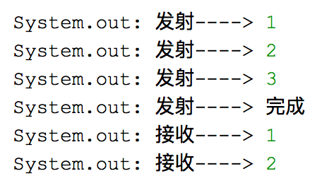 1public void flowableTest2() { 2 Flowable 3 .create(new FlowableOnSubscribe<Integer>() { 4 @Override 5 public void subscribe(FlowableEmitter<Integer> e) throws Exception { 6 System.out.println("发射----> 1"); 7 e.onNext(1); 8 System.out.println("发射----> 2"); 9 e.onNext(2);10 System.out.println("发射----> 3");11 e.onNext(3);12 System.out.println("发射----> 完成");13 e.onComplete();14 }15 }, BackpressureStrategy.BUFFER) 16 .subscribeOn(Schedulers.newThread())17 .observeOn(Schedulers.newThread())18 .subscribe(new Subscriber<Integer>() {19 @Override20 public void onSubscribe(Subscription s) {21 s.request(2);//设置Subscriber的消费能力为222 }2324 @Override25 public void onNext(Integer integer) {26 System.out.println("接收----> " + integer);27 }2829 @Override30 public void onError(Throwable t) {31 }3233 @Override34 public void onComplete() {35 System.out.println("接收----> 完成");36 }37 });38}