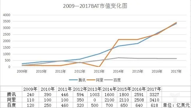 最近看头条新闻,百度市值蒸发了将近4000亿被美图和京东追上了,这在一些方面可以说是改写了BAT三足鼎立的格局。那么百度真的就会被赶下神坛吗?我感觉未来十年人工智能的发展会让百度实现弯道超车,成为像阿里和腾讯一样体量超过5000亿美元。