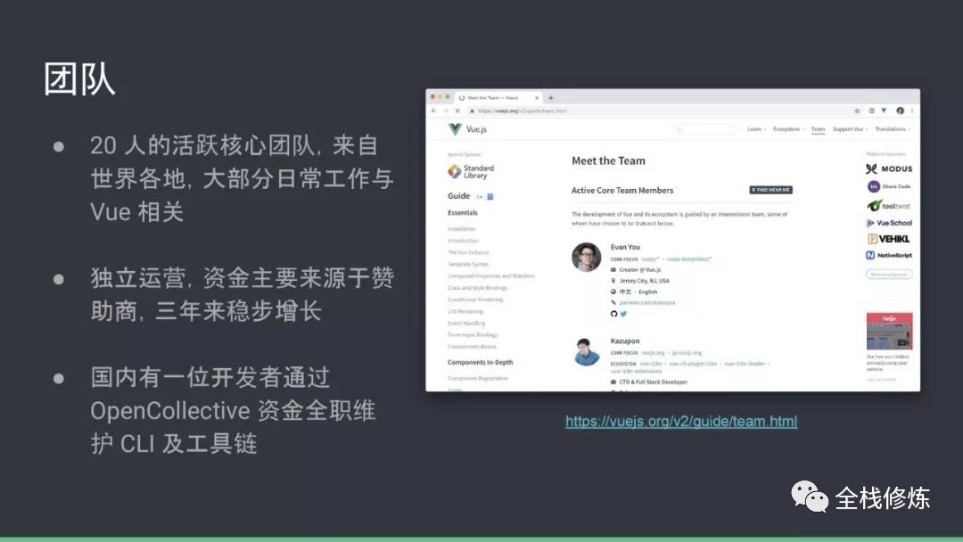 Vue 团队成员简介:https://vuejs.org/v2/guide/team.html