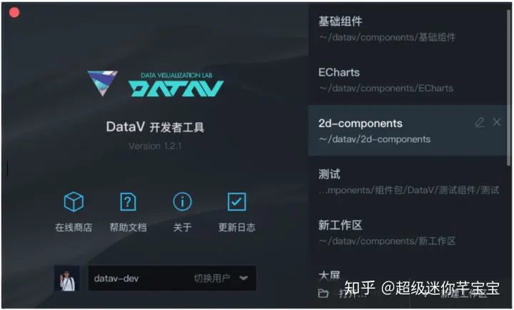 (DataV开发者工具界面,该工具用户辅助用户自测组件运行是否稳定)