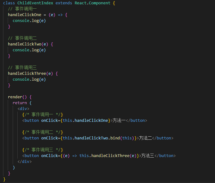 - 子组件添加一个方法,当事件触发的时候调用这个方法,再通过这个方法调用父组件的方法
