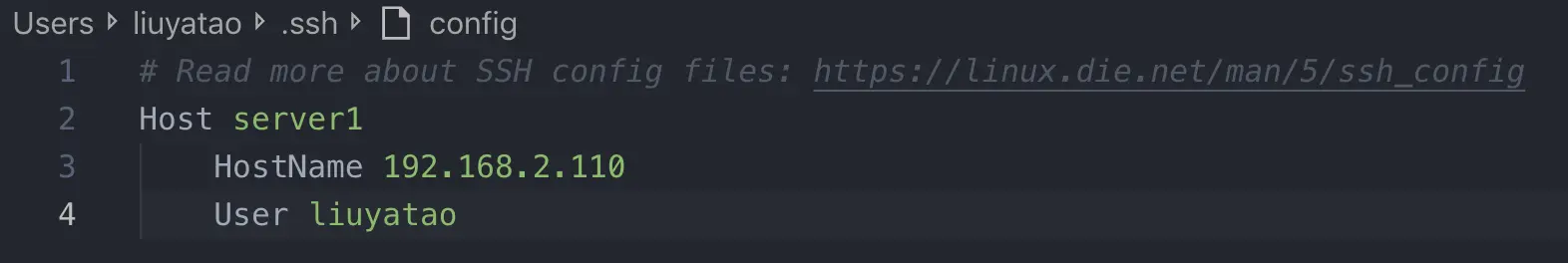 添加完后要登录服务器就只需输入liuyatao@192.168.2.110就可以直接进入服务器,不需要密码。