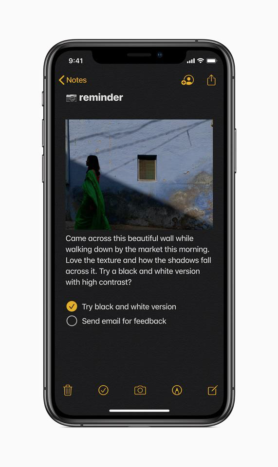 首先我们先来看看备受大家期待的“黑暗模式”。根据现场演示,苹果所有的官方应用都将支持深色模式,视觉效果很好。