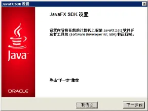 提示要安装一个 JavaFX SDK(这是 SUN 公司应用于互联网的一种脚本编程语言,更便捷的展现图形界面能力),因为不做这方面技术的开发。所以不需要安装了。