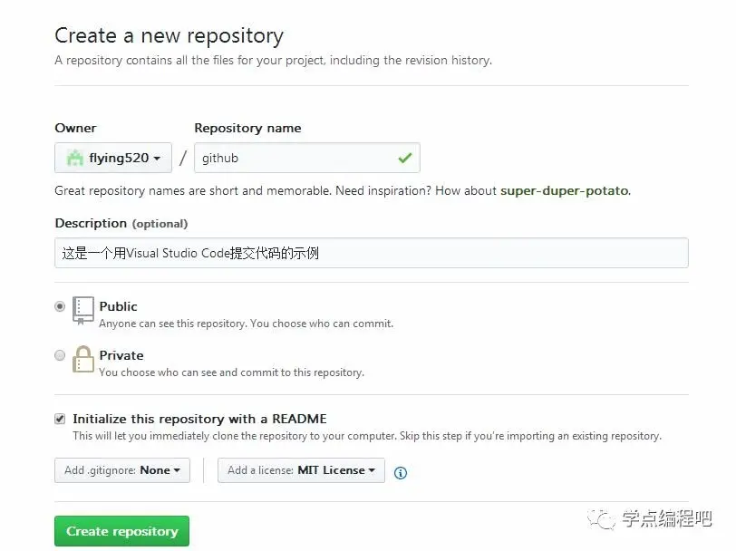5.这时候会消失代码管理中会消失,其实是暂时缓存提交了 整个过程非常的简单。事实上提交到本地代码库没有意义,我们主要目的是为了提交到Github上。所以,我们在Github上新建一个代码仓库。如下图: