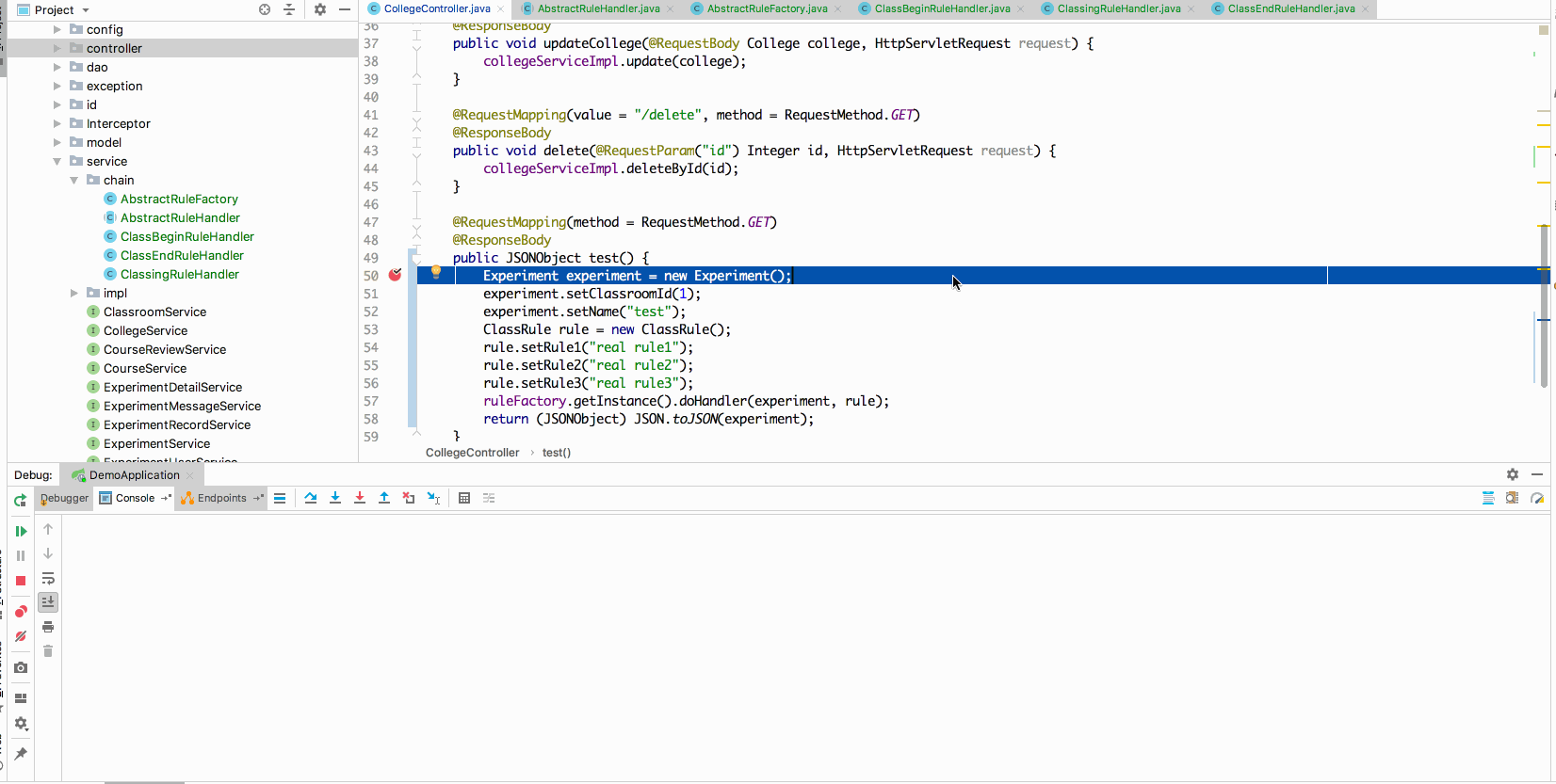 可以看到,通过factory.getInstance().doHandle(experiment, rule),责任链会根据设定的顺序进行执行,每个业务操作都进行分开了,代码也更加整洁,维护性也更强了。