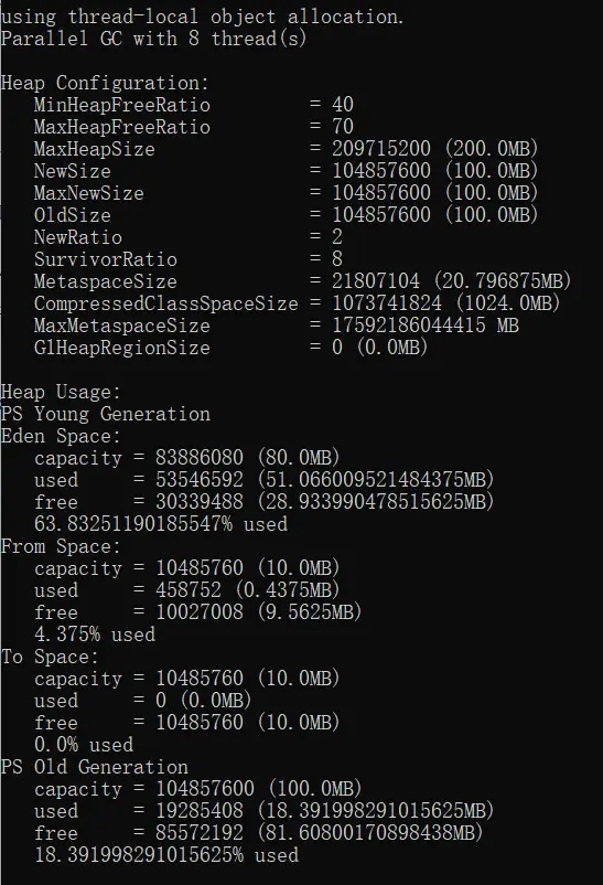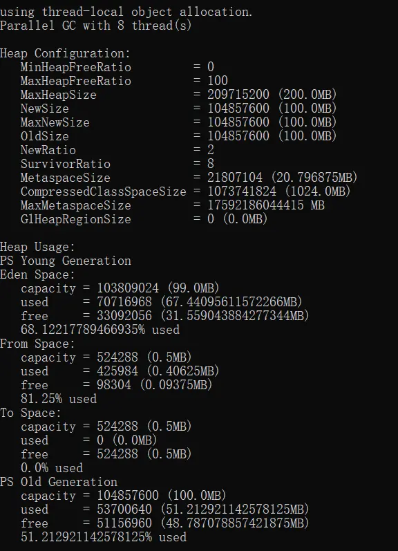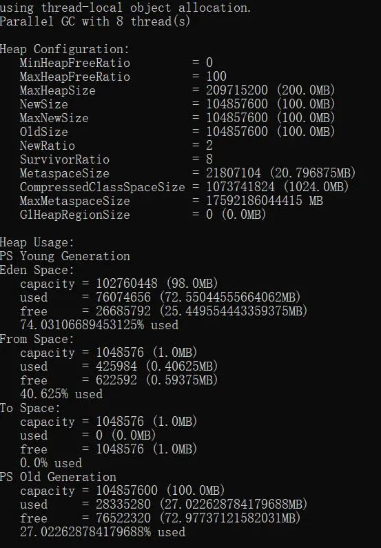 第一次查看,我们发现 Eden区是98M,S0、S1是1M
