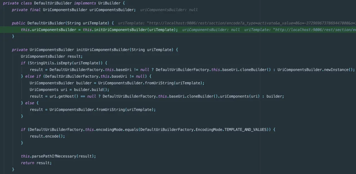 到这里我们可以发现DefaultUriBuilderFactory默认builder工厂存在一个内部类DefaultUriBuilder