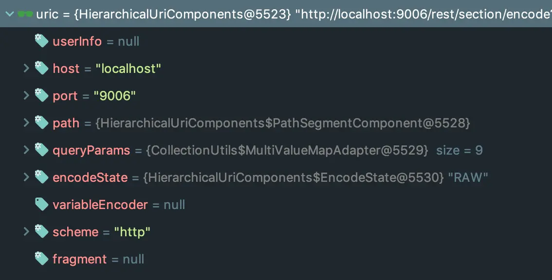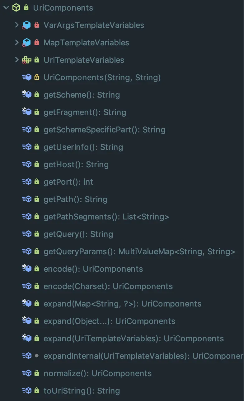 顾名思义,UriComponents包含了构成URI的组件,以及一系列的getter and setter方法