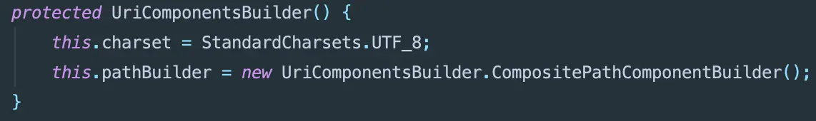 符合了内置的url pattern之后继续构建UriComponentsBuilder,通过构造器可以看出默认字符集是utf-8