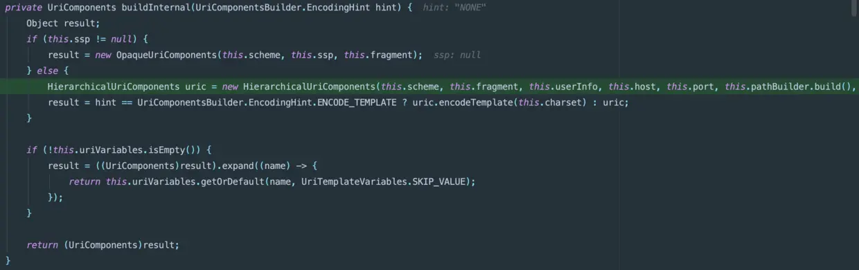 - 继续看外层的包裹,构建完之后的UriComponents