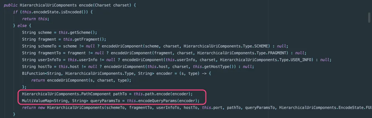 HierarchicalUriComponents组件有个枚举EncodeState,其值的影响在于以上的EncodingHint。 源码的encode过滤也在于这个组件的EncodeState值!!!