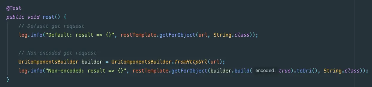 UriComponentsBuilder构建器有个枚举EncodingHint,UriComponentsBuilder构建时encoded默认为false。