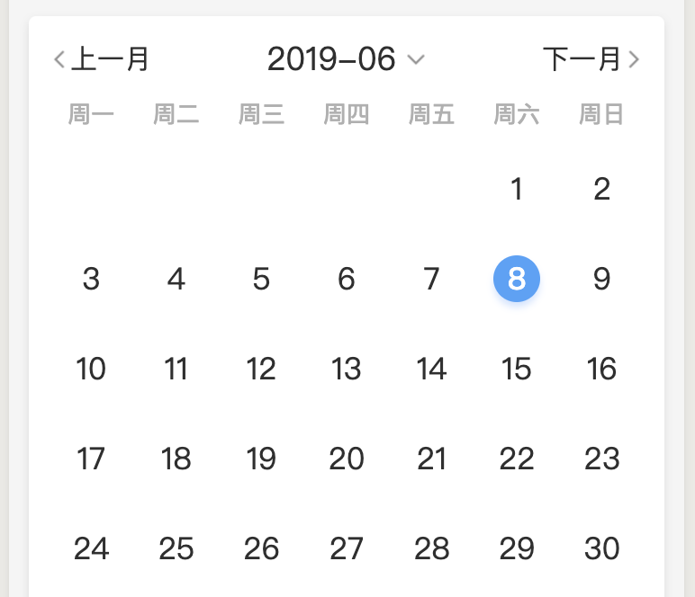 首先是判断出每个月的第一天是周几,然后进行样式修改就行了,其实还是很简单的😄