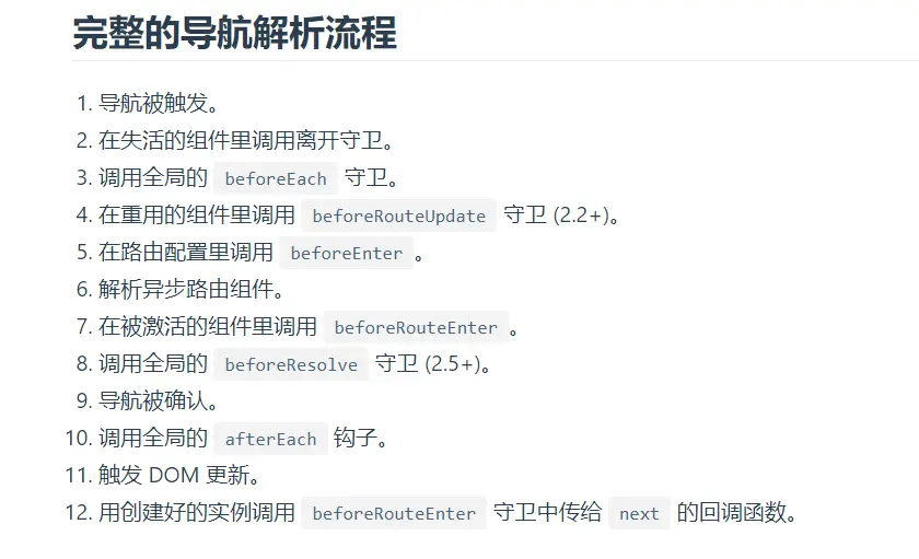 - 异步路由解析成功后执行的一系列路由守卫