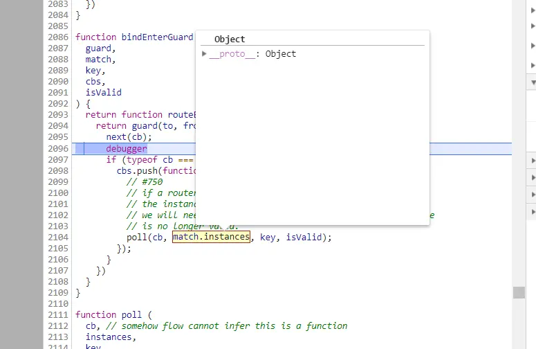 个人认为 vue-router 的源码并不是那么容易理解,多层的回调非常跳跃(个人认为如果 vue-router 使用 async/await 语法会容易理解的多),并且伴随着很多边缘情况的处理,在阅读源码时,建议新建一个工程,找到源码文件,多通过 debugger 的形式执行文中所说的关键函数,观察参数以及调用栈的依赖关系