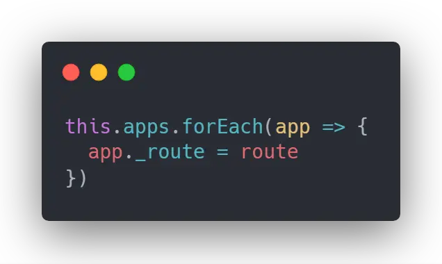 接下来我们来分析这个能改变视图的函数, this.apps 我们第一章分析过,是一个保存根 Vue 实例的数组,最终会将根实例的 _route 属性更新为当前的 $route 对象,就是这样短短一行代码就可以实现整个页面的切换,这是为什么呢?