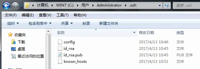 然后一路回车。这时你就会在用户下的.ssh目录里找到id_rsa和id_rsa.pub这两个文件