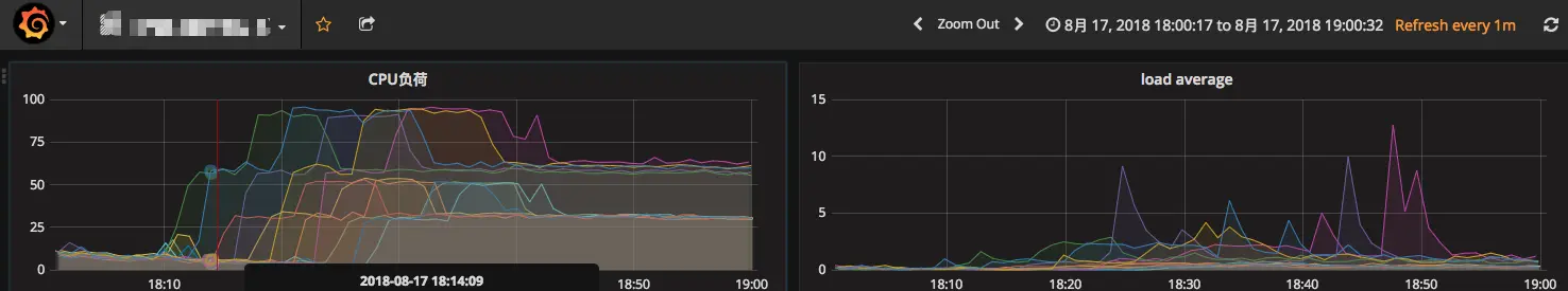 上周五,通过Grafana监控,线上环境突然出现CPU和内存飙升的情况: