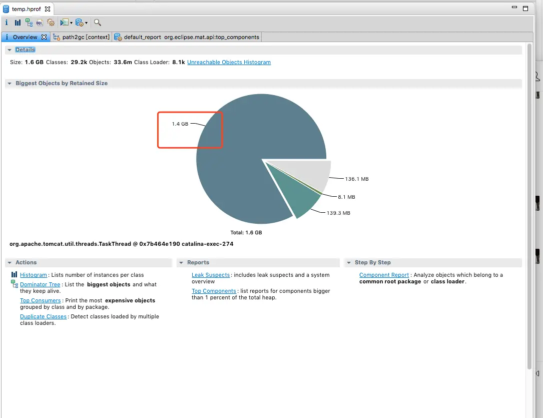 通过mat工具对dump文件进行分析,调查是什么请求占用了大内存: