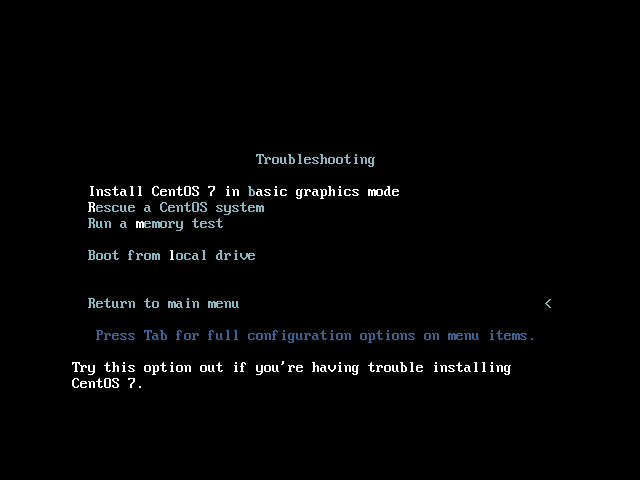 - 使用箭头键,将光标移动到『Install CentOS 7 』。