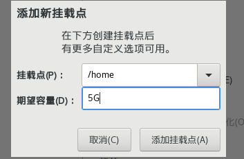 接着,建立 /home 装载点,容量为 5 G: